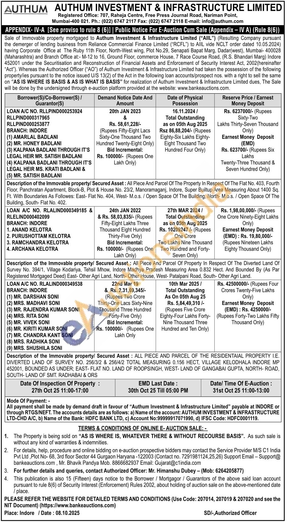 Authorized Officer: Mr. Himanshu Dubey - (Mobile no : 6264205877)