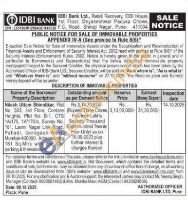 Flat No. 303. 3rd Floor, Contare Heights, Plot No. B-1, CTS 1A/170, 1A/170-b, Survey No 161, Laxmi Nagar Link Road, Pahadi, Goregaon-West. Mumbai-400090. Admeasuring 181 Sq.Mtrs with one Car parking & thereabouts.