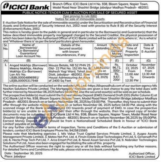 Mouza Betala, NB 52 PHN 25 Old-22 Plot No. 152 Kh No. B Mahesh Yogi Ward, Tehsil And Distt, Jabalpur-482002. Row House Admeasuring An Area of 2400 Sq Feet