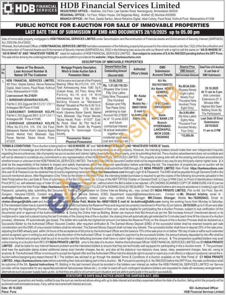 Area Manager: MR.Chetan Dhangar Mobile No:-7820829423 / Authorised Officer: MR.Kedar Patil Mobile No:-9860118039