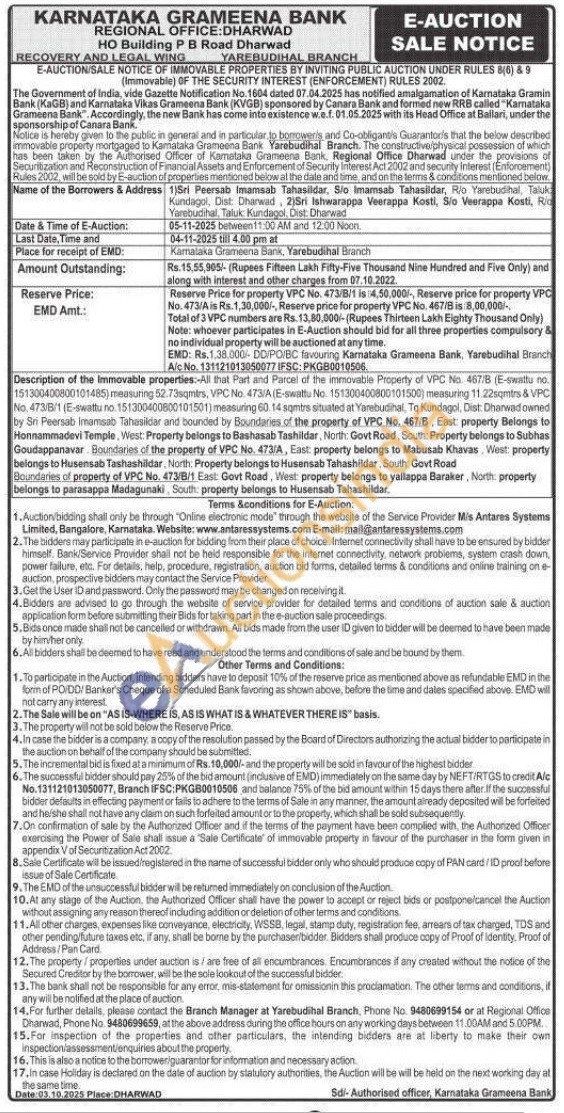 All that Part and Parcel of the immovable Property of VPC No. 467/B (E-swattu no 151300400800101485) measuring 52.73sqmtrs, VPC No. 473/A (E-swatt No. 151300400800101500) measuring 11.22sqmtrs & VPC No. 473/8/1 (E-swattu no 151300-400600101501) measuring 60. 14 samt situated at Yarebudihal. To Kundagol, Dist Dharwad owned by Sri Peersab Imamsab Tahasildar and bounded by Boundaries of the property of VPC No. 467/B, East: property Belongs to Honnammadevi Temple, West: Property belongs to Bashasab Tashildar, North Govt Road, South: Property belongs to Subhas Goudappanavar Boundaries of the property of VPC No. 473/A, East: property belongs to Mabusab Khavas, West: property belongs to Husensab Tashashildar, North: Property belongs to Husensab Tahashildar South Govt Road Boundaries of property of VPC No. 473/8/1 East: Govt Road, West property belongs to yallappa Baraker, North, property belongs to parasappa Madagunaki, South property belongs to Husensab Tahashildar.