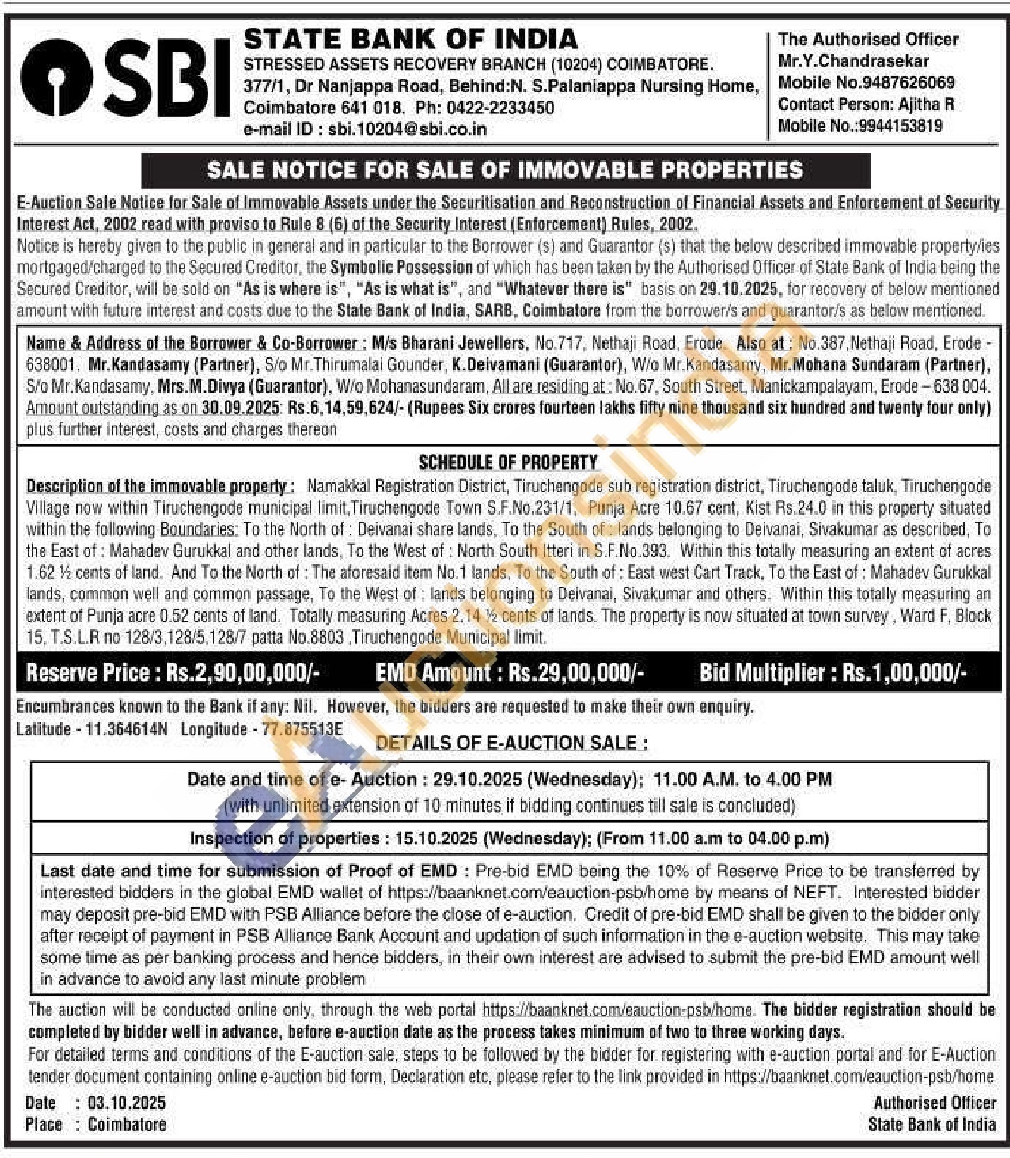 Mr.Y.Chandrasekar:9487626069 Mr.Ajitha R :9944153819