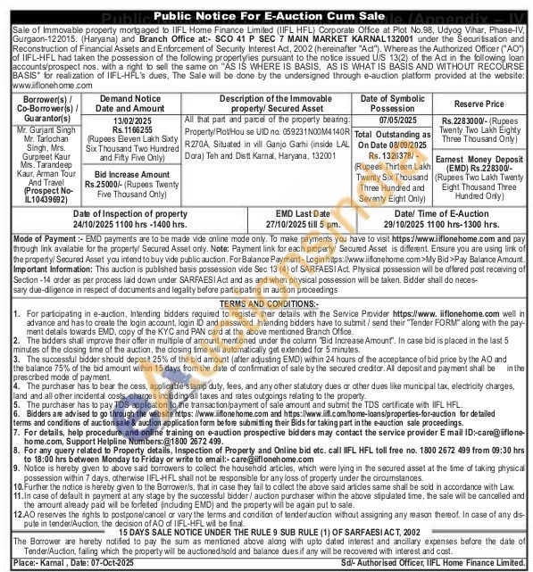 All that part and parcel of the property bearing: Property/Rot Hou se UID no. 059231N00M4140R R270A, Situated in vill Ganjo Garhi (inside LAL Dora) Teh and Distt Kamal, Haryana, 132001