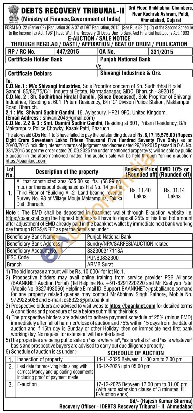 All that constructed area 635.00 sq. fts. (58.99 sq. mts.) or thereabout designated as Flat No. 14 on the 1. Third Floor of "Building A -2" Land bearing revenue Survey No. 98 of Village Mouje Maktampura, Taluka Dist. Bharuch.