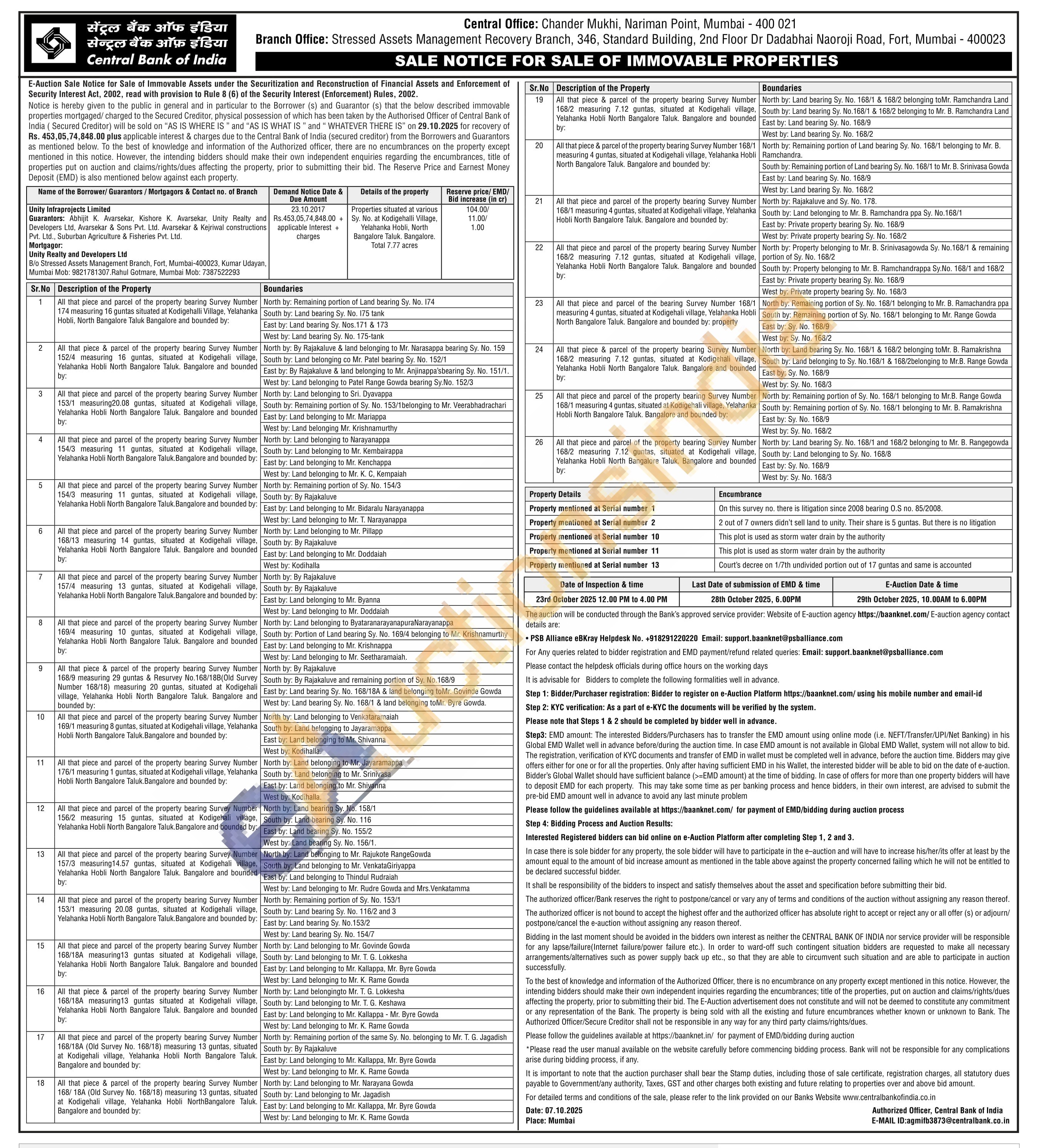 All that piece & parcel of the property bearing Survey Number 152/4 measuring 16 guntas, situated at Kodigehali village, Yelahanka Hobli North Bangalore Taluk. Bangalore and bounded by: All that piece and parcel of the property bearing Survey Number 153/1 measuring20.08 guntas, situated at Kodigehali village, Yelahanka Hobli North Bangalore Taluk. Bangalore