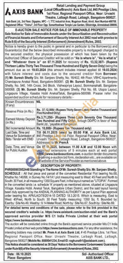 All that piece and parcel of the converted Residential Plot bearing No.68, Khatha No. 140/68, in Survey No. 14/1A1 plot measuring east to West: 45 Feet and North to South: 30 Feet, in all measuring 1350 Square Feet, in the layout named as "UTOPIA". Formed in the converted lands ie schedule 'A' property as mentioned above, situated at Lingapura Village. Kasaba Hobli. Anekal Taluk, Bangalore Urban District, and the said layout having been duly approved by the ANEKAL PLANNING AUTHORITY as per Layout Plan approval order bearing No. APA/LAO/78/2014-15 DATED 18.3.2015. Which is measuring, East to West: 45Feet, North to South: 30 Feet Totally measuring: 1350 Sq. ft. Bounded by: East by: Site No.49, Westby: 9.14 Meter Road, North by: Site No.67, South by: Site No.69