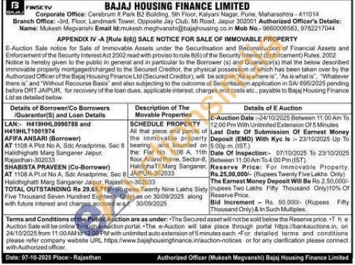 All that piece and parcel of the immovable property bearing and bounded on the: Flat No. 1108 A. 11th floor, Anand Prime, Sector-8. HaldighaTi Marg Sanganer. JAIPUR-302033