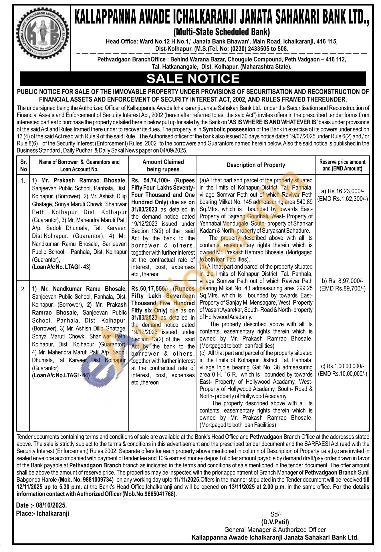 (c) All that part and parcel of the property situated in the limits of Kolhapur District, Tal. Panhala, village Injole bearing Gat No. 38 admeasuring area 0 H. 16 R.. which is bounded by towards East- Property of Hollywood Acadamy, West-Property of Hollywood Acadamy, South- Road & North-property of Hollywood Acadarny.