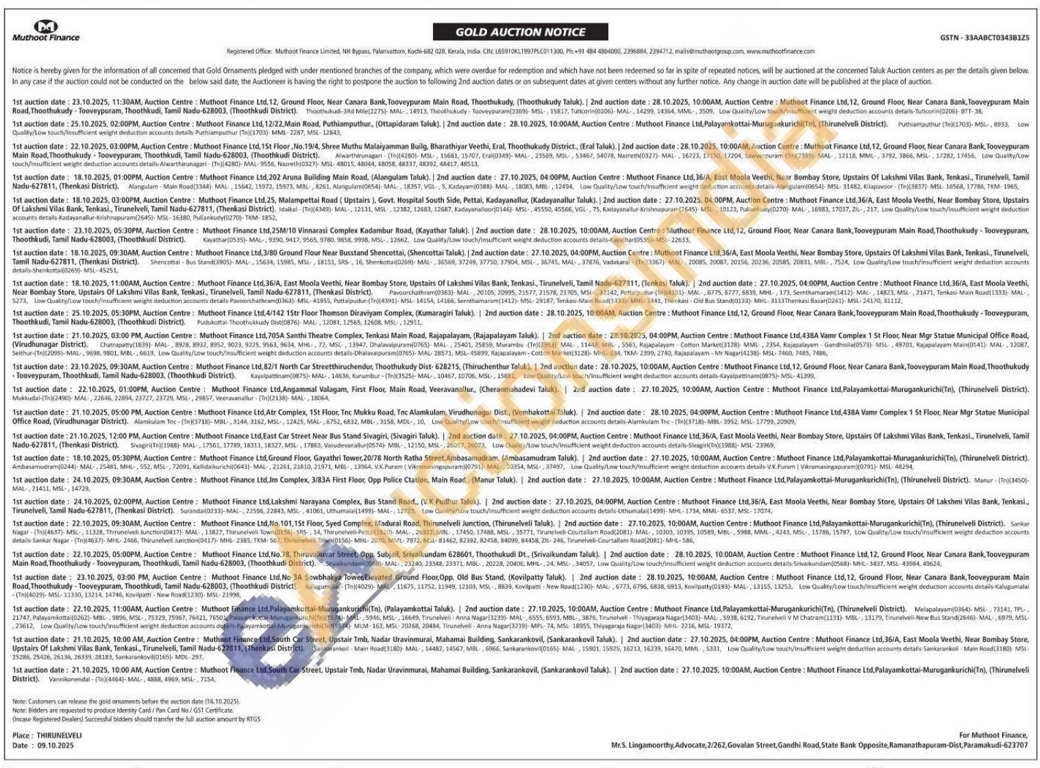 Muthoot Finance Ltd Gold Auctions Auction in Thoothukudi