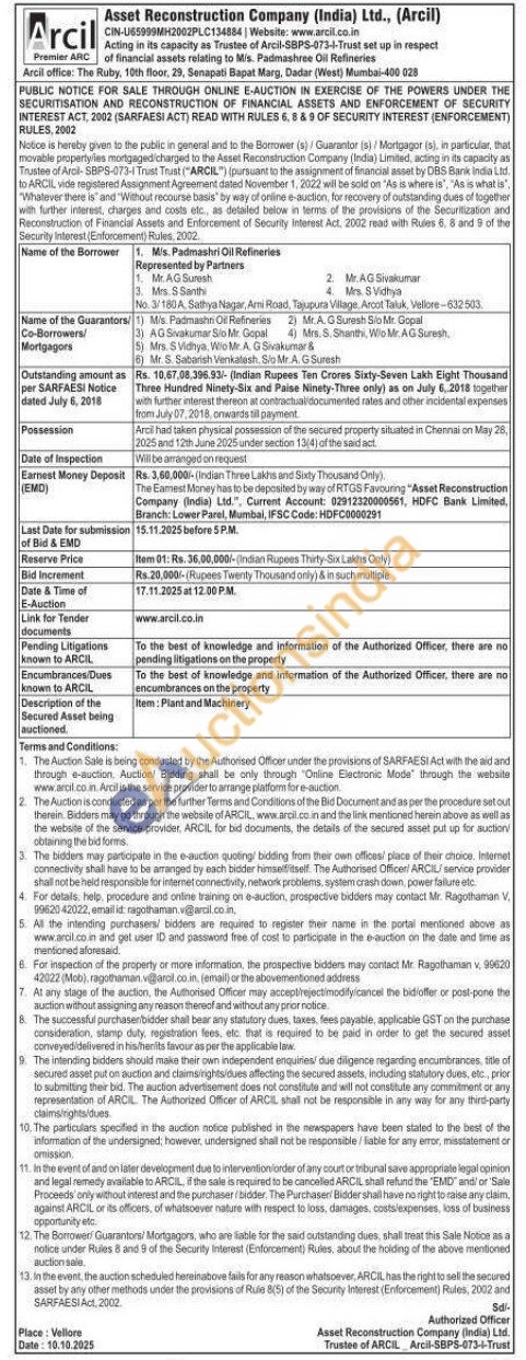 Scrap, Plant & Machinery