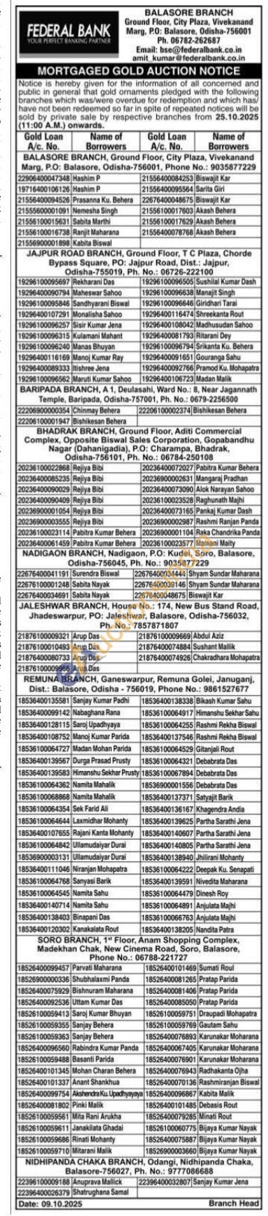 Federal Bank Gold Auctions Auction in Balasore