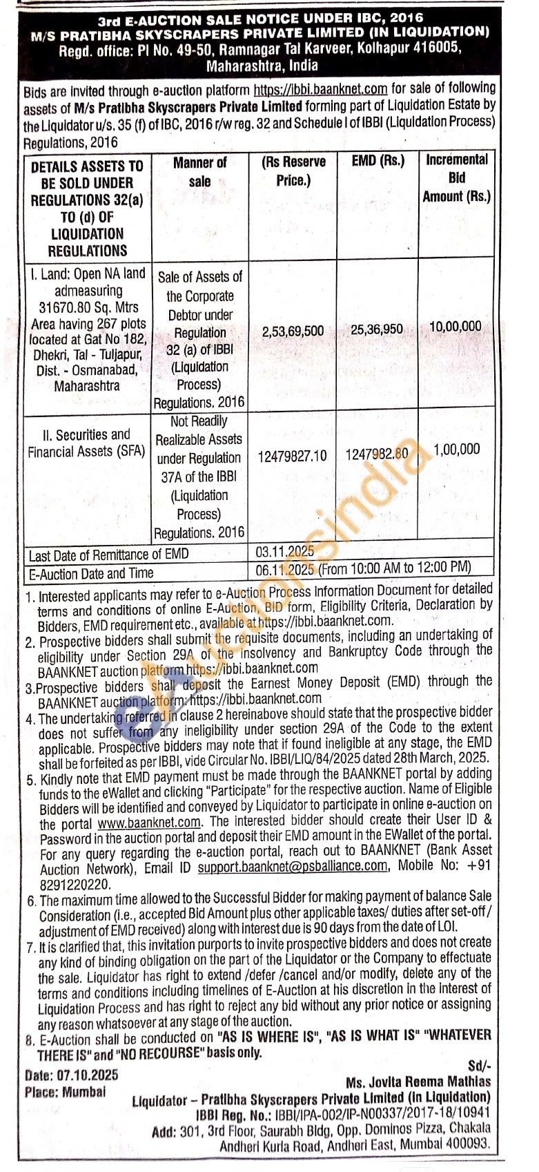 Liquidation E-Auction Others Auction in Tuljapur, Osmanabad