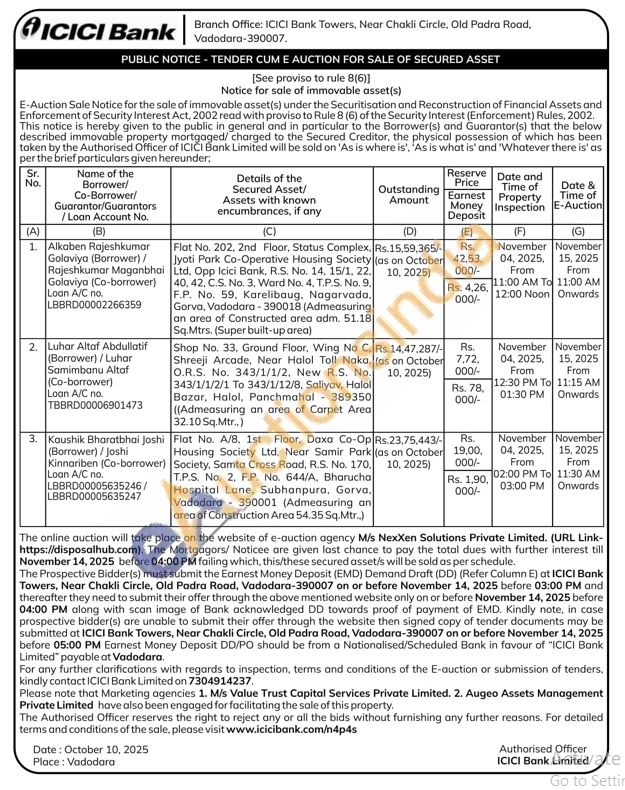 Shop No. 33, Ground Floor, Wing No C. Shreeji Arcade, Near Halol Toll Naka, O.R.S. No. 343/1/1/2, New R.S. No. 343/1/1/2/1 Το 343/1/12/8, Saliyav, Halol Bazar, Halol, Panchmahal 389350 ((Admeasuring an area of Carpet Area 32.10 Sq.Mtr.,)