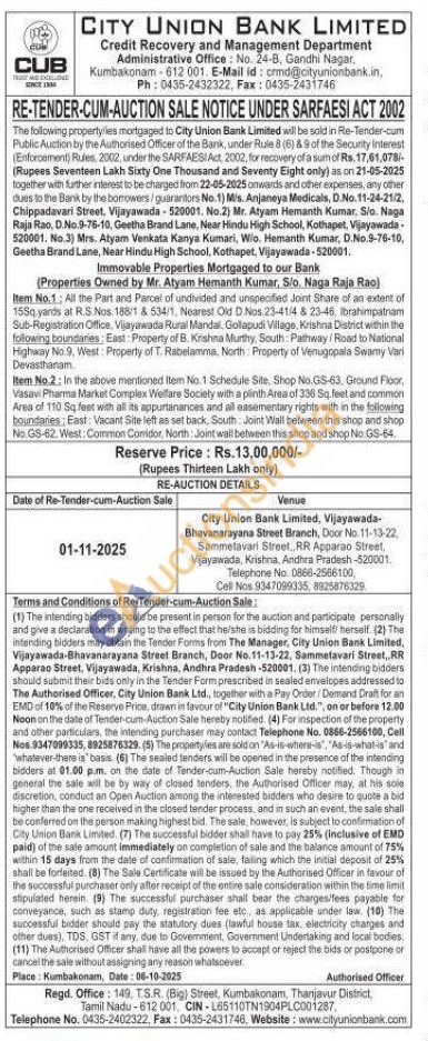 Item No.1: All the Part and Parcel of undivided and unspecified Joint Share of an extent of 1550 yards at R.S Nos. 188/1 & 534/1. Nearest Old D.Nos 23-41/4 & 23-46, Ibrahimpatnam Sub-Registration Office, Vijayawada Rural Mandal, Gollapudi Village, Krishna District within the following boundaries: East Property of B. Krishna Murthy, South: Pathway/Road to National Highway No.9, West: Property of T. Rabelamma. North Property of Venugopala Swamy Vari Devasthanam