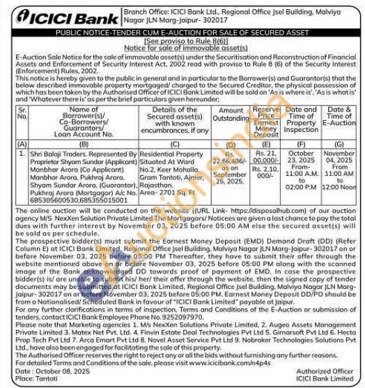 Residential Property Situated At Ward No.2. Keer Mohalla. Gram Tantoti, Ajmer, Rajasthan.Area-2701 Sq. Ft