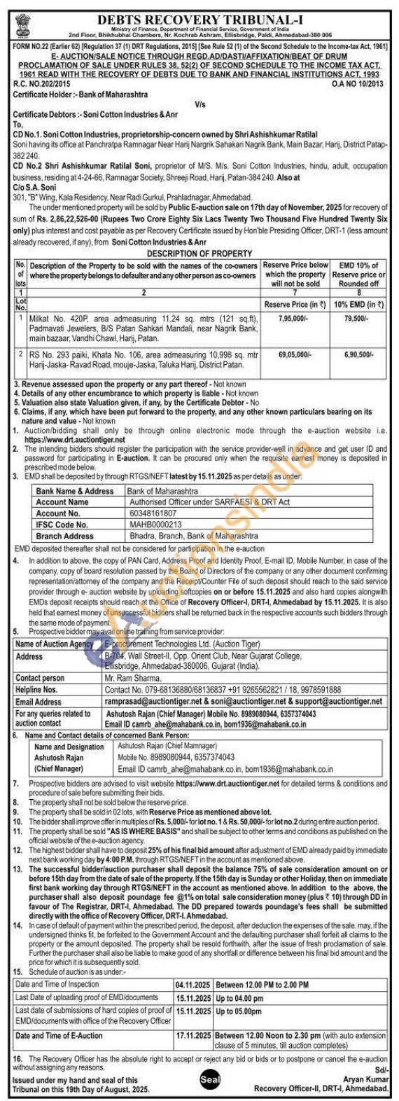 Milkat No. 420P area admeasuring 11,24 Padmavati Jewelers, B/S Patan Sahkan Mandall, near Nagrik Bank main bazaar, Vandhi Chawl, Harij Patan