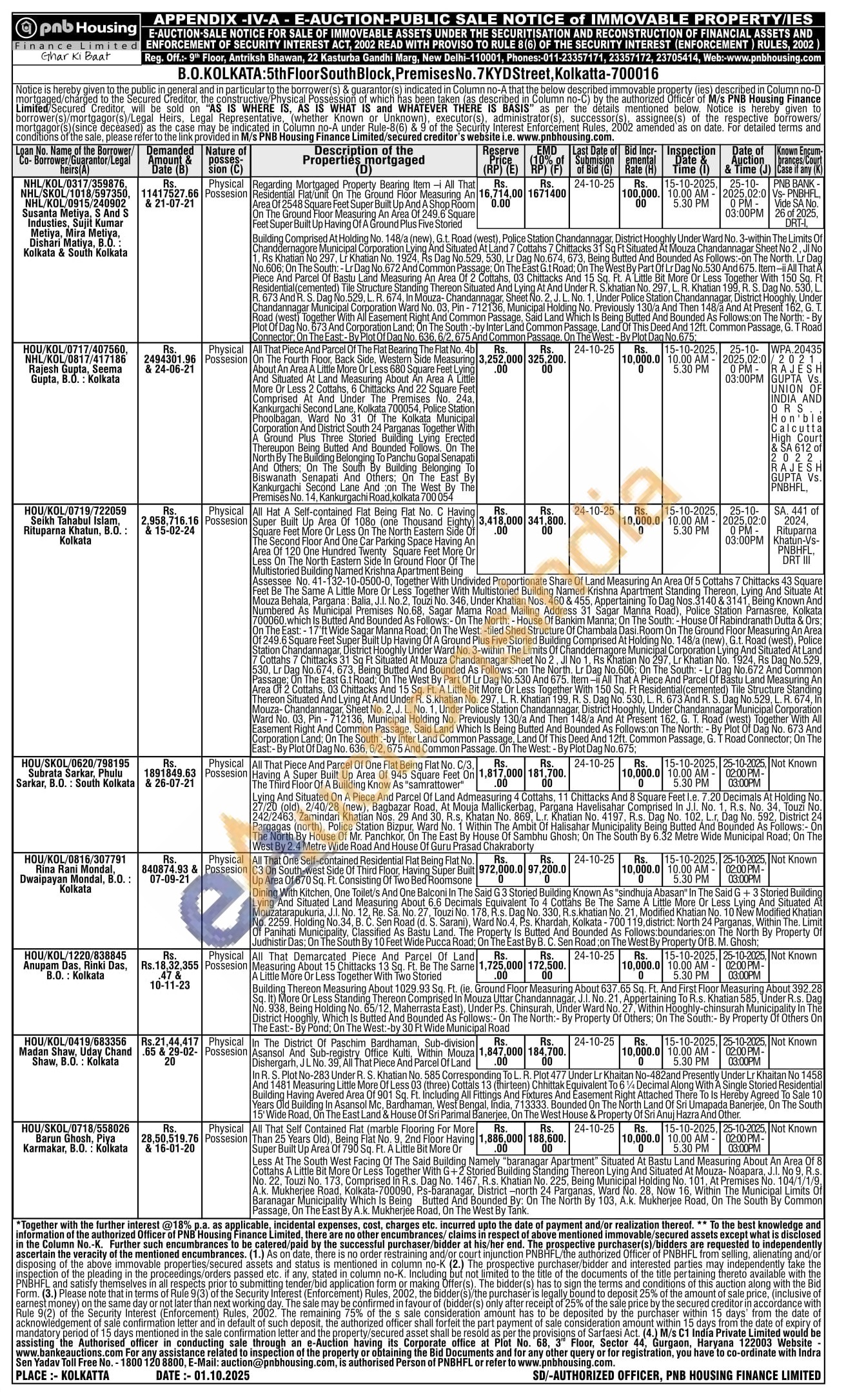 All That Self Contained Flat (marble Flooring For More Than 25 Years Old), Being Flat No. 9, 2nd Floor Having Super Built Up Area Of 790 Sq. Ft. A Little Bit More Or Less At The South West Facing Of The Said Building Namely "baranagar Apartment" Situated At Bastu Land Measuring About An Area Of 8 Cottahs A Little Bit More Or Less Together With G+2 Storied Building Standing Thereon Lying And Situated At Mouza- Noapara, J.I. No 9, R.s. No. 22, Touzi No. 173, Comprised In R.s. Dag No. 1467, R.s. Khatian No. 225, Being Municipal Holding No. 101, At Premises No. 104/1/1/9, A.k. Mukherjee Road, Kolkata-700090, Ps-baranagar, District-north 24 Parganas, Ward No. 28, Now 16, Within The Municipal Limits Of Baranagar Municipality Which Is Being Butted And Bounded By: On The North By 103, A.k. Mukherjee Road, On The South By Common Passage, On The East By A.k. Mukherjee Road, On The West By Tank