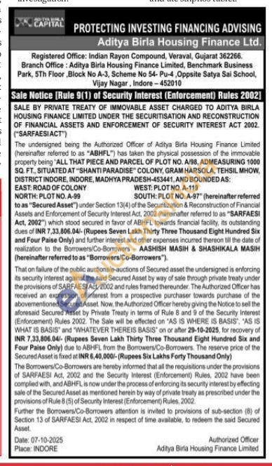 ALL THAT PIECE AND PARCEL OF PLOT NO. A/98, ADMEASURING 1000 SQ. FT. SITUATED AT "SHANTI PARADISE" COLONY, GRAM HARSOLA, TEHSIL MHOW, DISTRICT INDORE, INDORE, MADHYA PRADESH-453441, AND BOUNDED AS: EAST: ROAD OF COLONY NORTH: PLOT NO.A-99 WEST: PLOT NO. A-119 SOUTH: PLOT NO. A-97"