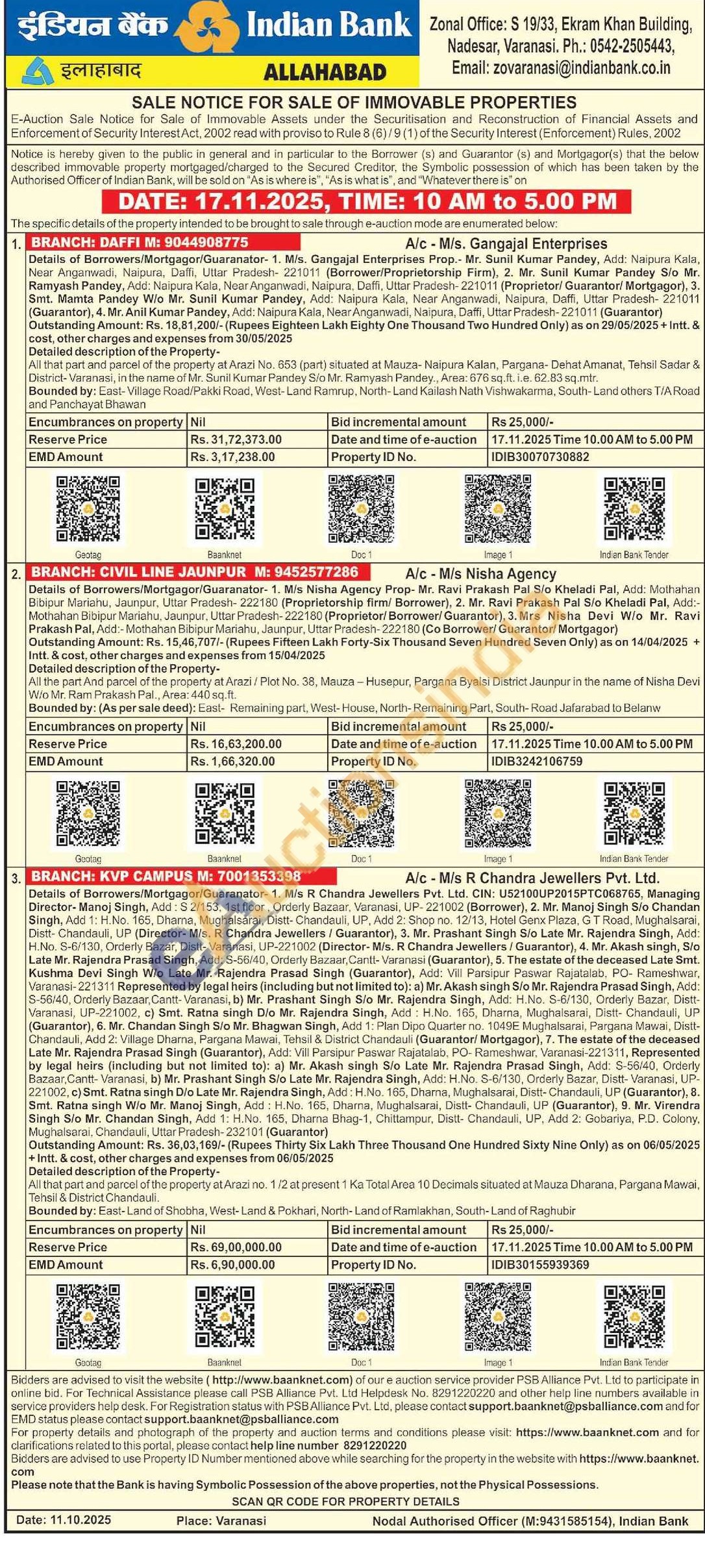 All that part and parcel of the property at Arazi No. 653 (part) situated at Mauza-Naipura Kalan, Pargana-Dehat Amanat, Tehsil Sadar & District-Varanasi, in the name of Mr. Sunil Kumar Pandey S/o Mr. Ramyash Pandey., Area: 676 sq.ft. i e. 82.83 sq.mtr. Bounded by: East-Village Road/Pakki Road, West-Land Ramrup, North-Land Kailash Nath Vishwakarma, South-Land others T/A Road and Panchayat Bhawan