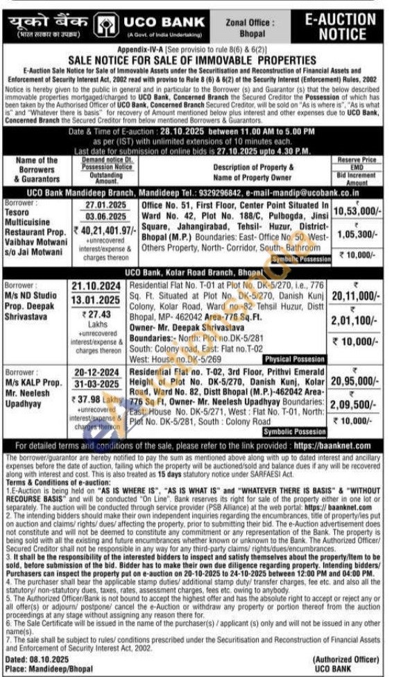 Residential Flat no. T-02, 3rd Floor, Prithvi Emerald Height of Plot No. DK-5/270, Danish Kunj, Kolar Road, Ward No. 82, Distt Bhopal (M.P.)-462042 Area-776 Sq Ft, Owner- Mr. Neelesh Upadhyay Boundaries: East: House No. DK-5/271, West: Flat No. T-01, North: Plot No. DK-5/281, South: Colony Road