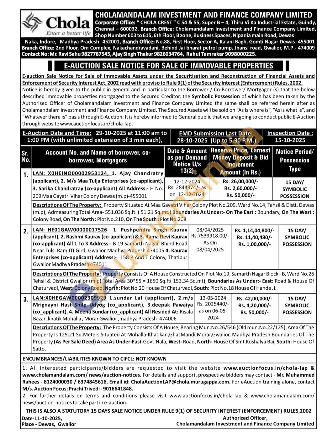 Descriptions Of The Property: The Property Consists Of A House, Bearing Mun. No.26/546 (Old mun. No.22/125), Area Of The Property Is 125.21 Sq.Meters Situated At Mohalla-Khatikan, GhasMandi, Morar, Gwalior, Madhya Pradesh Boundaries Of The Property (As Per Sale Deed) Area As Under-East-Govt-Nala, West-Road, North-House Of Smt. Koshalya Bai, South- House Of Satto.