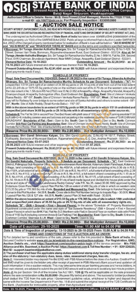 Authorised Officer's Details: Name: Mr. B. Vara Prasad (Chief Manager) Mobile No : 7702877188