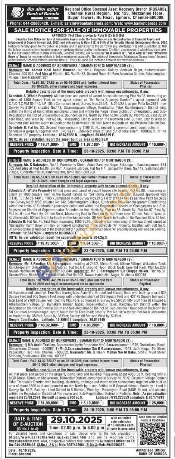 Contact Authorized Officer Tel No. 044-28885428, Mob: 9987478064