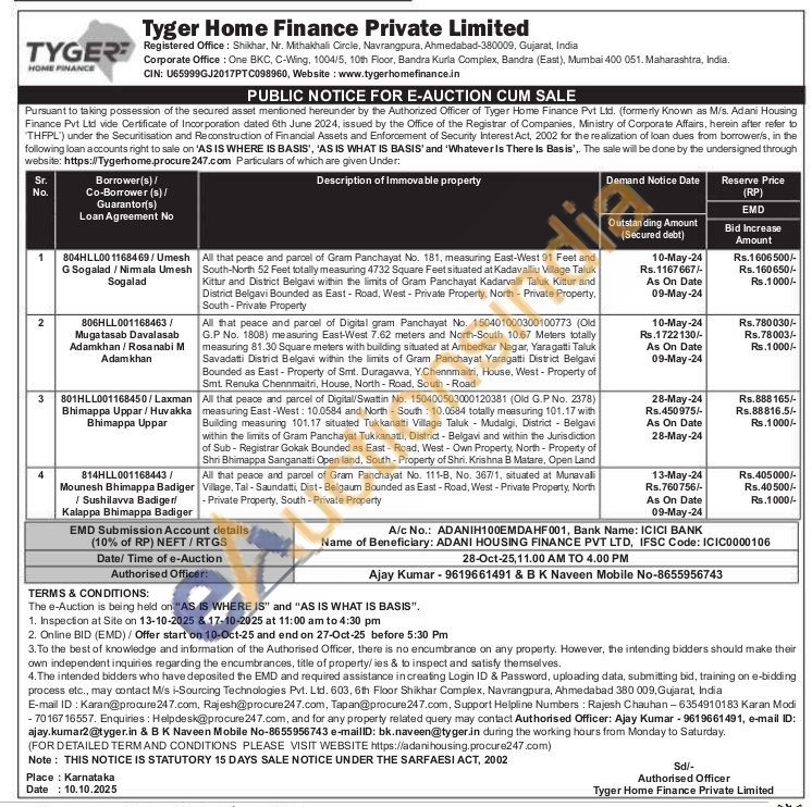 All that peace and parcel of Digital/Swattin No. 150400503000120381 (Old G.P No. 2378) measuring East-West: 10.0584 and North-South 10.0684 totally measuring 101.17 with Building measuring 101.17 situated Tukkanatti Village Taluk Mudalgi, District - Belgavi within the limits of Gram Panchayat Tukkanatti, District - Belgavi and within the Jurisdiction of Sub-Registrar Gokak Bounded as East Road, West - Own Property, North - Property of Shri Bhimappa Sanganatti Open land, South-Property of Shri. Krishna B Matare, Open Land