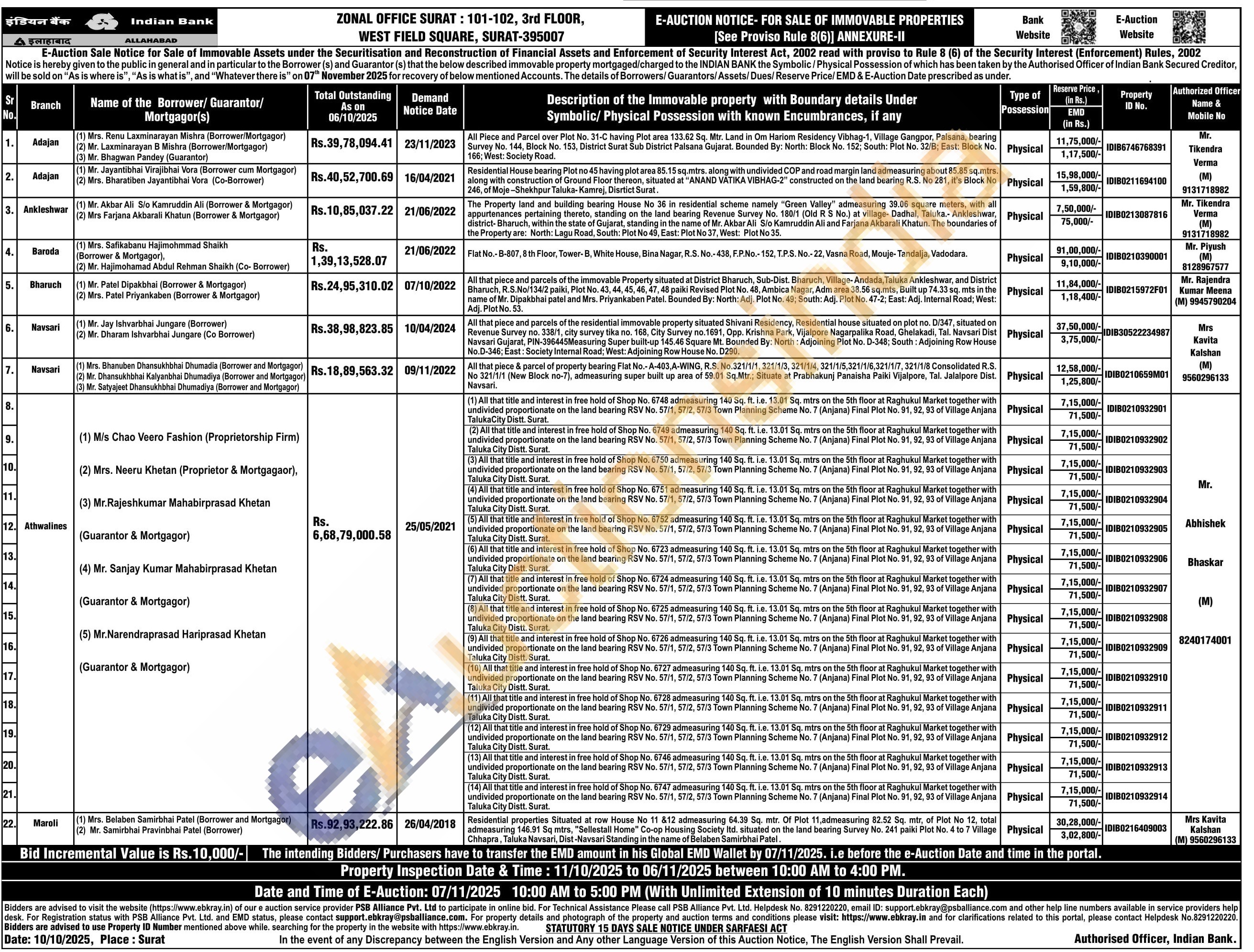 (11) All that title and interest in free hold of Shop No. 6728 admeasuring 140 Sq. ft. i.e. 13.01 Sq. mtrs on the 5th floor at Raghukul Market together with undivided proportionate on the land bearing RSV No. 57/1, 57/2, 57/3 Town Planning Scheme No. 7 (Anjana) Final Plot No. 91, 92, 93 of Village Anjana Taluka City Distt. Surat