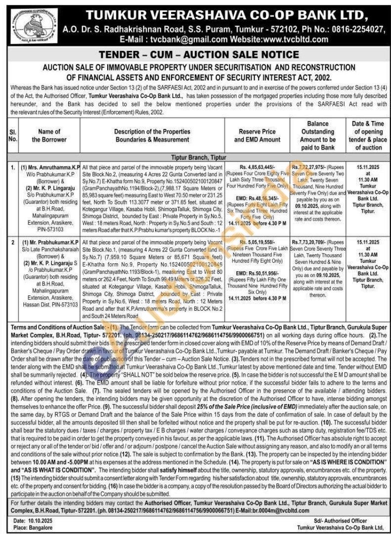 All that piece and parcel of the immovable property being Vacant Site Block.No.2, (measuring 4 Acres 22 Gunta Converted land in Sy No. 7) E-Khatha form No.9, Property No. 152400502100120847 (Gram PanchayathNo.1194/Block-2) (7.988.17 Square Meters or 85.983 square feet) measuring East to West 70.50 meter or 231.25 feet, North To South 113.3077 meter or 371.65 feet situated at Kotegangur Village, Kasaba Hobili, Shimoga Talluk, Shimoga City. Shimoga District, bounded by East: Private Property in Sy. No.5, West 18 meters Road, North: Property in Sy.No.5 and South: 12 meters Road after that KP. Prabhu kumar's property BLOCK No.-1