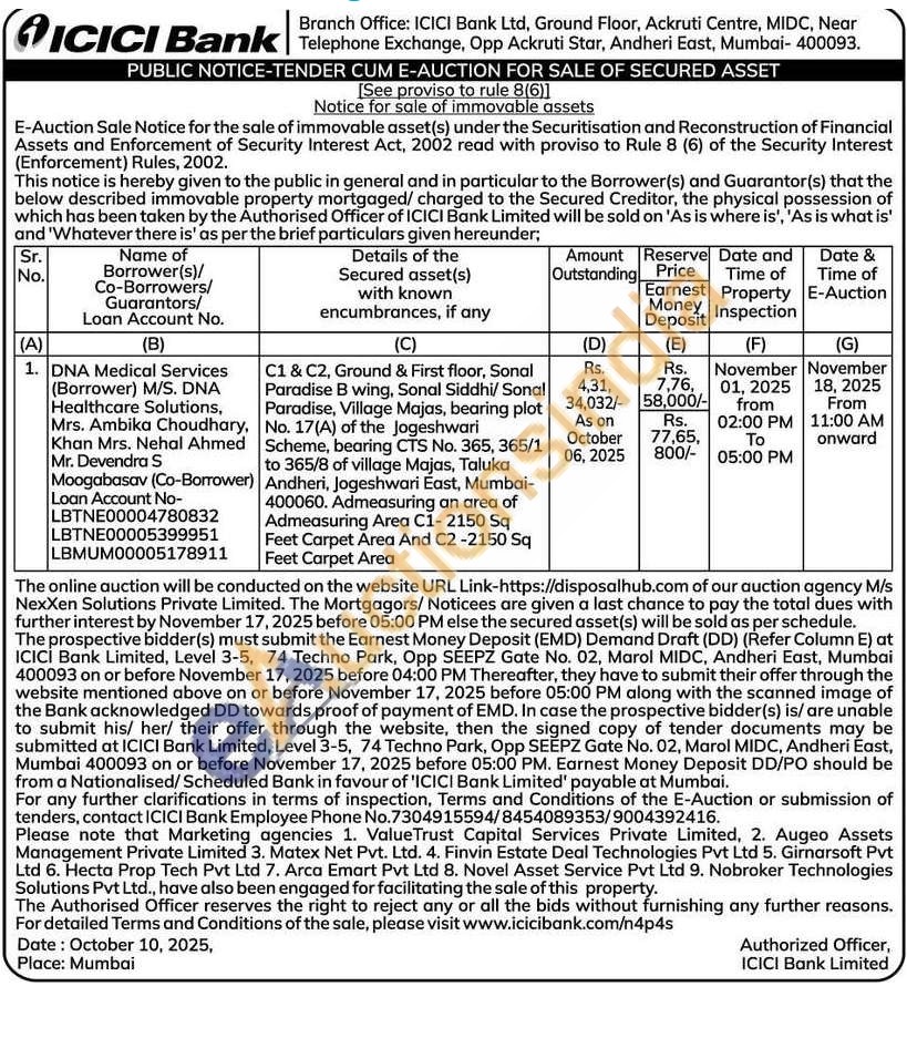 C1 & C2, Ground & First floor, Sonal Paradise B wing, Sonal Siddhi/Sonal Paradise, Village Majas, bearing plot No. 17(A) of the Jogeshwari Scheme, bearing CTS No. 365, 365/1 to 365/8 of village Majas, Taluka Andheri, Jogeshwari East, Mumbai-400060. Admeasuring an area of Admeasuring Area C1-2150 Sq Feet Carpet Area And C2-2150 Sq Feet Carpet Area