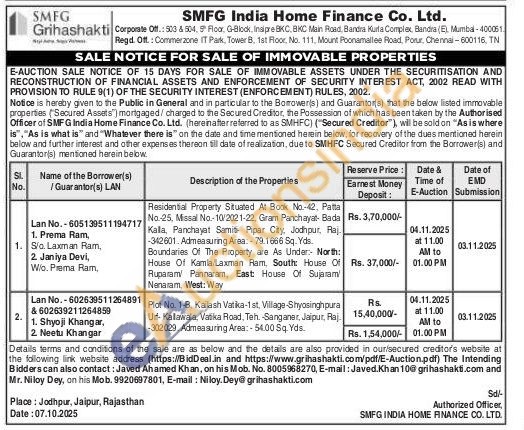 Residential Property Situated At Book No-42, Patta No.-25, Missal No.-10/2021-22, Gram Panchayat Bada Kalla, Panchayat Samit Pipar City, Jodhpur, Raj -342601. Admeasuring Area:-79.1666 Sq. Yds. Boundaries Of The Property are As Under- North: House Of Kamla/Laxman Ram, South: House Of Ruparam Pannaram, East House Of Sujaram/Nenaram, West: Way