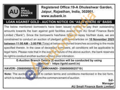 AU Small Finance Bank Gold Auctions Auction in Haveri