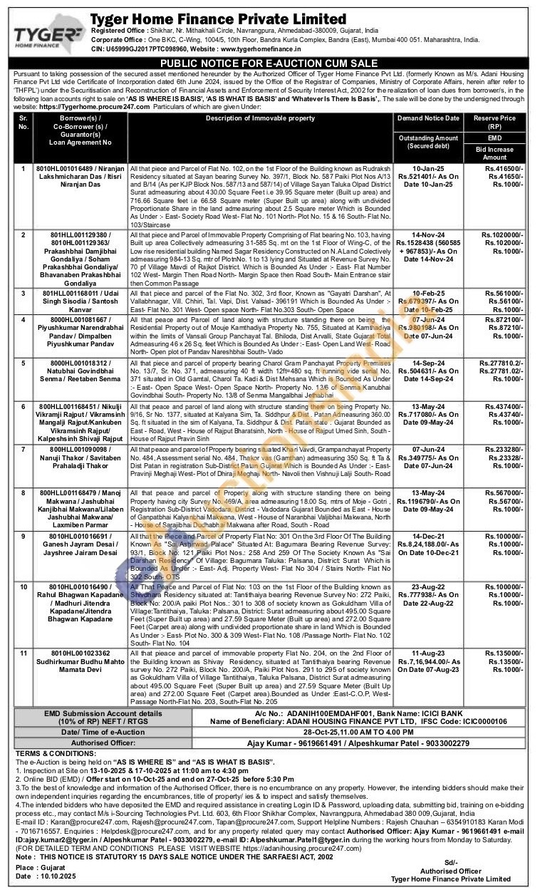 8) All that peace and parcel of Property along with structure standing there on being Property having city Survey No. 469/A, area admeasuring 18.00 Sq. mtrs of Moje - Gotri, Registration Sub-District Vadodara, District - Vadodara Gujarat Bounded as East - House of Ganpatbhai Kalyanbhai Makwana, West - House of Naranbhai Valjibhai Makwana, North House of Sarajibhai Dudhabhai Makwana after Road, South - Road