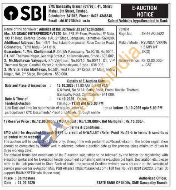 Vehicle Regn. No : TN 66 AQ 5522 Make/Model: HYUNDAI VERNA 1.5 MPI IVT SX(0)