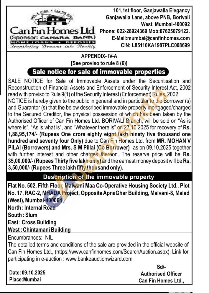 Flat No. 502, Fifth Floor, Malwani Maa Co-Operative Housing Society Ltd., Plot No. 17, RAC-2, MHADA Project, Opposite ApnaGhar Building, Malvani-8, Malad (West), Mumbai-400064