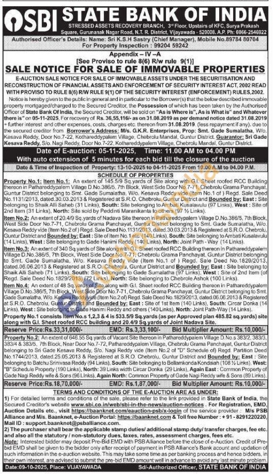 Schedule-A: Kristvia District, Vijayawada District Registry, the Property is situated at Vijayawada Municipal Corporation Area, Vijayawada Town, Bhavonipuram in RS Nox81/3 and the Boundaries of the Apartment: East: Property of S. Pullaiah, South: Muniopal Road, West: Property of Chandra Koteswara Rao, North: Property of Magam Anjaneya Babu In between these four boundaries an Extent of 200.00 Sq.yds or 167.22 Sq.mts out of which an undivided and unspecified 1/6 Share in 33.33 Sq.yds or 27.87 Sq.mts, and Schedule-B: In Schedule Aproperty, constructed in the name and style of "Sri Sai Towers", second floor north side fiat, Flat No. S.F.-A, Present Municipal ward No.27, Old Assessment No.31227/5.new assessment No.335196 present new assessment No. 1073158498 present present Dr. No.1-4-249, property belonging to Sri Chimmata Anil, Sio Chimmata Srinivasa Rao, Vide Document No:289/2022, Dated: 10.01.2022, SRO Vijayawada and Bounded by: East: Open to Sky, South: Stair Case, Common Passage, West: Open to Sky, North: Open to Sky In between these four boundaries an 504.00 Stt of Plinth area (Actuals plinth area 773 773 Sq Ft and 118.40 Sq Ft common area as per BPS Proceedings of the Commissioner Vijayawada Municipal Corporation regularized scheme vide Ltr No