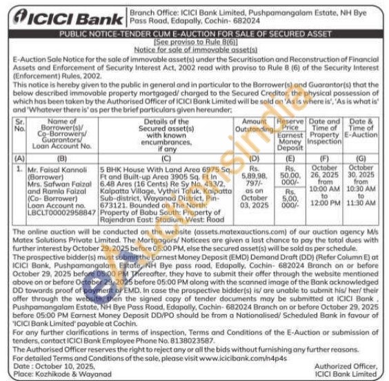 5 BHK House With Land Area 6975 Sq. Ft and Built-up Area 3905 Sq. Ft in 6.48 Ares (16 Cents) Re Sy No. 433/2. Kalpatta Village, Vythiri Taluk, Kalpatto Sub-district, Wayanad District, Pin-673121. Bounded on The North: Property of Babu South: Property of Rajendran East: Stadium West: Road