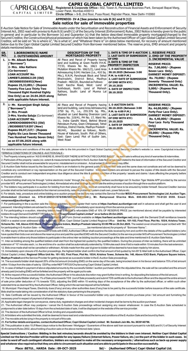 All Piece and Parcel of Property having land and building at Gram Pardhi P.H.N. 77/33, Khasra No No. 166/1 (After Mutation Khasra No. 166/1/2), Land Area Admeasuring 0.041 Hectare (Le, 410 Sq. Mts.), R.N.M, Panchayat Block and Tehsil Bhainsdehi, District Betul, Madhya Pradesh-460220, Bounded as Follows: East: Kaccha Road, West: Land of of Sukhdayal, North: Land of Mahesh Rathore, South: Land of Munna Lal Rathore