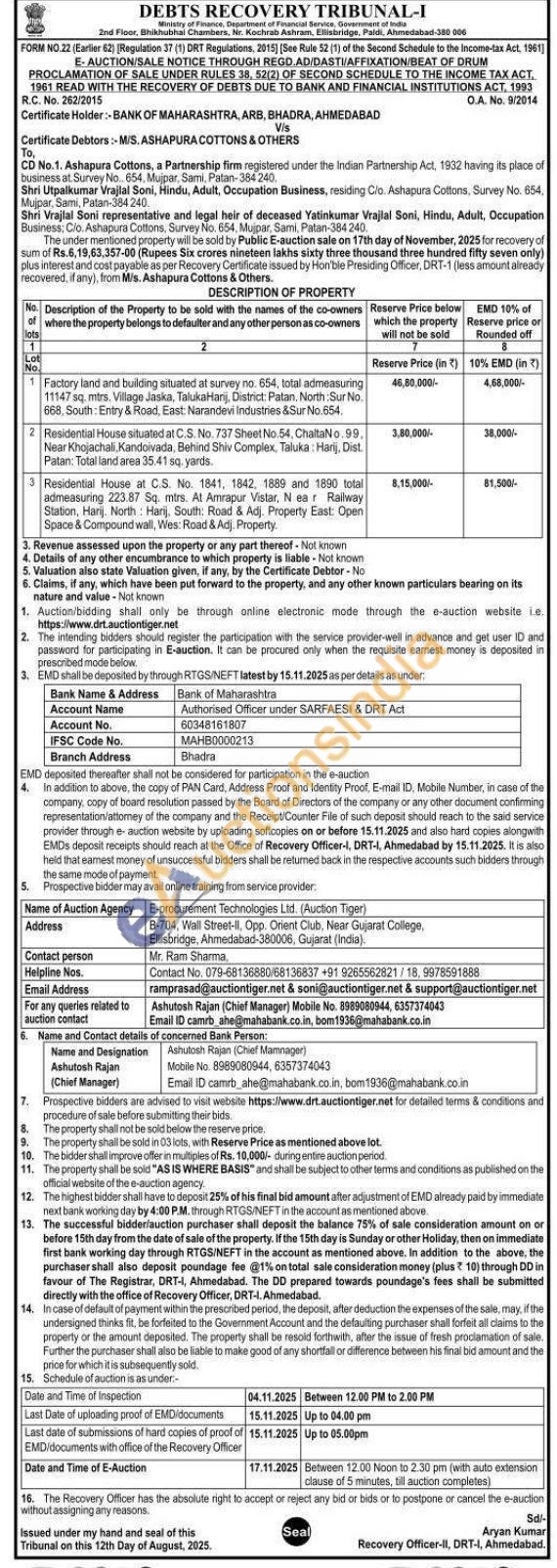Factory land and building situated at survey no 654, stal admeasuring 11147 sq mts. Village Jaska, Taluka HarjiDistrict Patan, North Sur No. South Entry & Road East Narandevi Industhes &Sur No 554