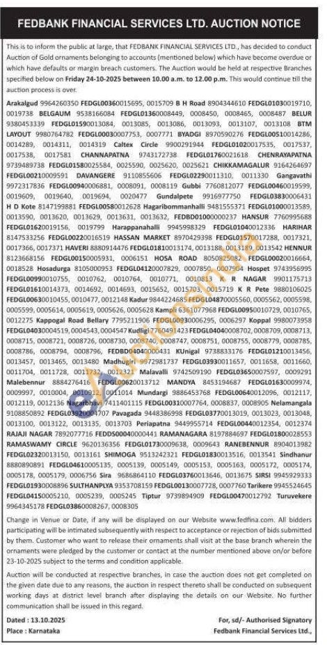 Fedbank Financial Services Ltd Gold Auctions Auction in Koppal