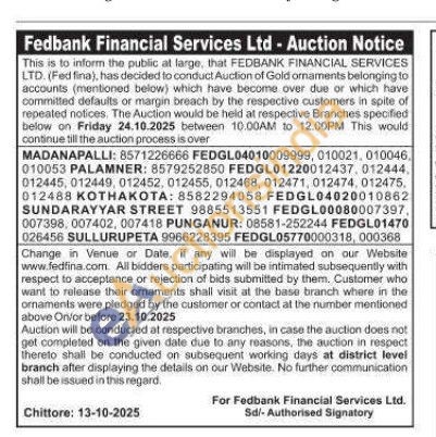 Fedbank Financial Services Ltd Gold Auctions Auction in Chittoor