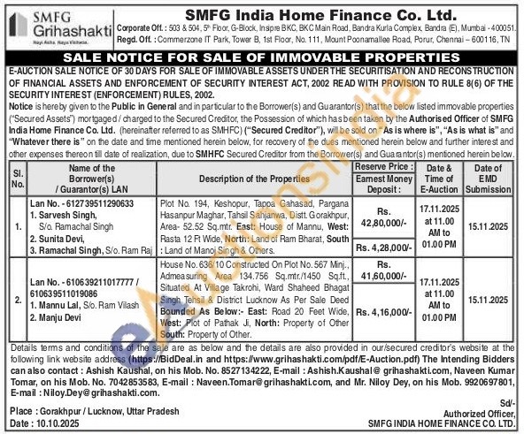 Plot No. 194, Keshopur, Tappa Gahasad, Pargana Hasanpur Maghar, Tahsil Sahjanwa, Distt. Gorakhpur, Area- 52.52 Sq.mtr. East: House of Mannu, West:Rasta 12 Ft Wide, North: Land of Ram Bharat, South : Land of Manoj Singh & Others