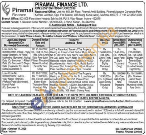 All The Plece and Parcel of The Property Having an Extent-Flat No. T-1, Jan Mangal Appartment Plot No. 257. Peace Pont Khandwa Road, Gram Limbodi Indore Indore Madhya Pradesh-452001, Boundaries As North Flat No. T-2 South Pict No. 258 East-Plot No 309 West-Colony Road
