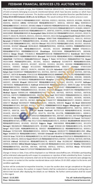 Fedbank Financial Services Ltd Gold Auctions Auction in Aurangabad