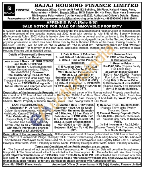 All that piece and parcel of the Non-agricultural Property described as: An extend of 1.62 Ares of land situated in Re Sy No. 208/9/10 of Aluva West Village, Aluva Taluk, Ernakulam District-683511 along with building bearing Door No 3/204-F East: Property of Abdullakkutty, West: Property of Shamla, North: Property of Sindhu, South: Private Road having width of 3.60 Meter