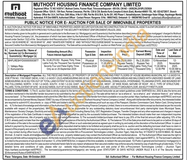 Contact Authorised Officer: Contact Person: Ranganna B No.: 9989374422, Omkaresh G-9902067892 Email ID: authorised officer@muthool.com
