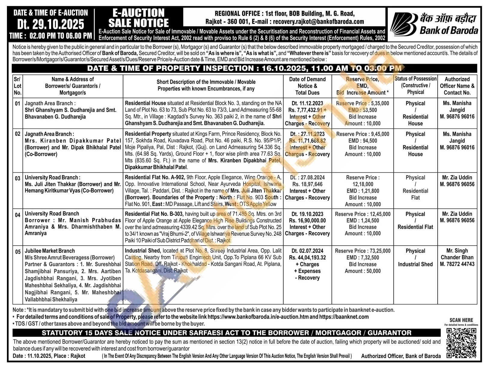 Residential Flat No. B-303, having built up area of 71.485 Sq. Mtrs. on 3rd Floor of Apple Orange at Apple Elegance High Rise Buildings Constructed over the land admeasuring 4339.42 Sq. Mtrs, over the land of Sub Plot No. 25 to 34/1 known as "Vraj Bhumi-2", of Village Ishwariya Revenue Survey No. 248 Paiki 10 Paiki of Sub District Paddhari of Dist.: Rajkot