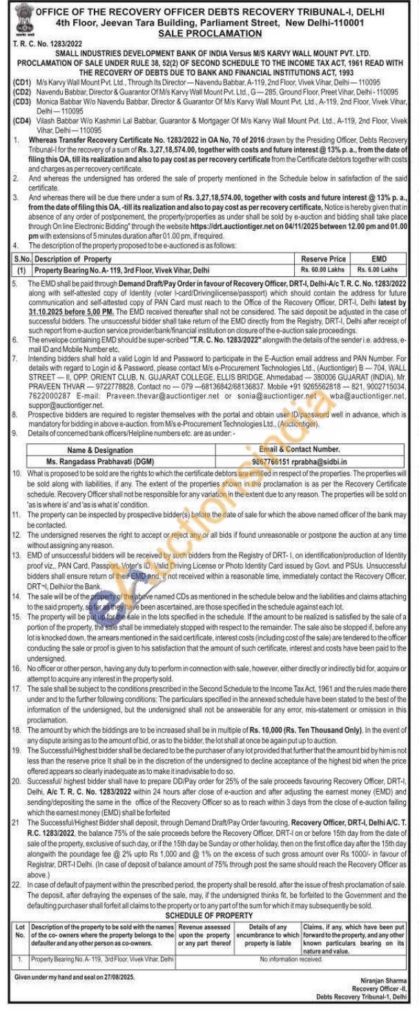 (1) Proparty Bearing No.A-118, 3rd Floor, Vivek Vihar, Delhi