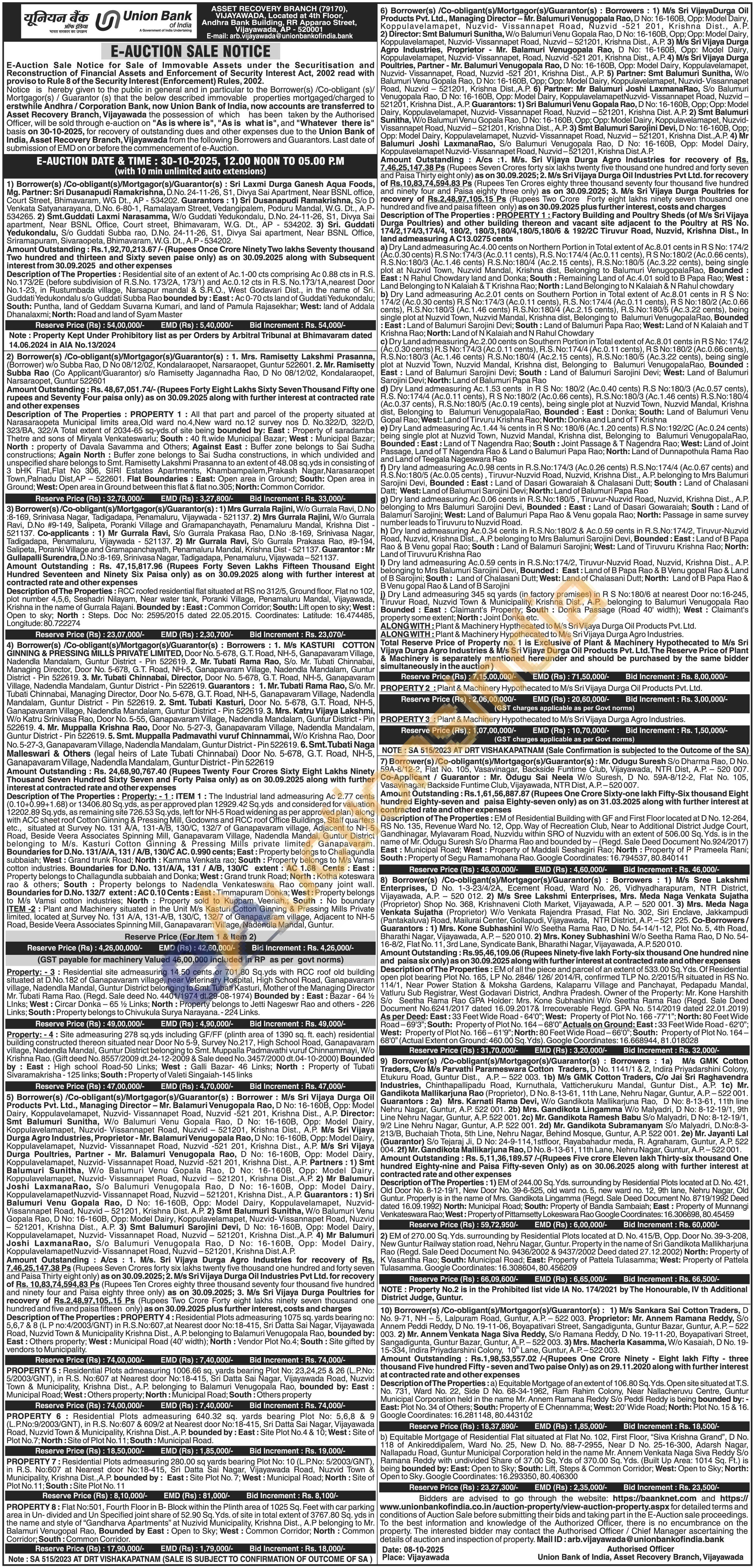a) Equitable Mortgage of an extent of 106.80 Sq. Yds. Open site situated at T.S. No. 731, Ward No. 22, Side D No. 68-34-1962, Ram Rahim Colony, Near Nallacheruvu Centre, Guntur Municipal Corporation held in the name Mr. Annem Ramana Reddy S/o Peddi Reddy is being bounded by: -East: Plot No. 34 of Others; South: Property of E Chennamma; West: 20' Wide Road; North: Plot No. 15 & 16. Google Coordinates: 16.281148, 80.443102